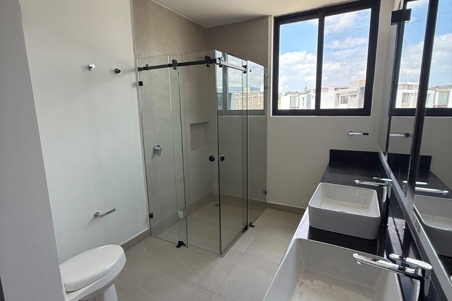 Recámara principal con vestidor, baño con 2 lavabos, vanity y terraza