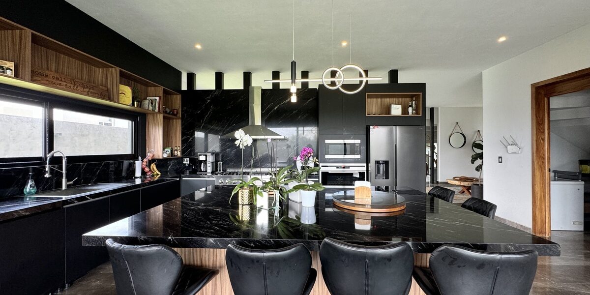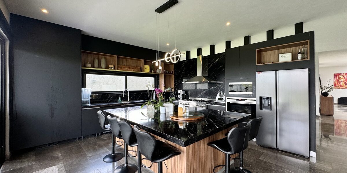 -cocina equipada con isla para hasta 8 personas toda la cocina tiene mucho espacio de almacenamiento mas aparte alacena.