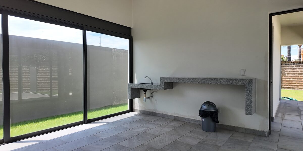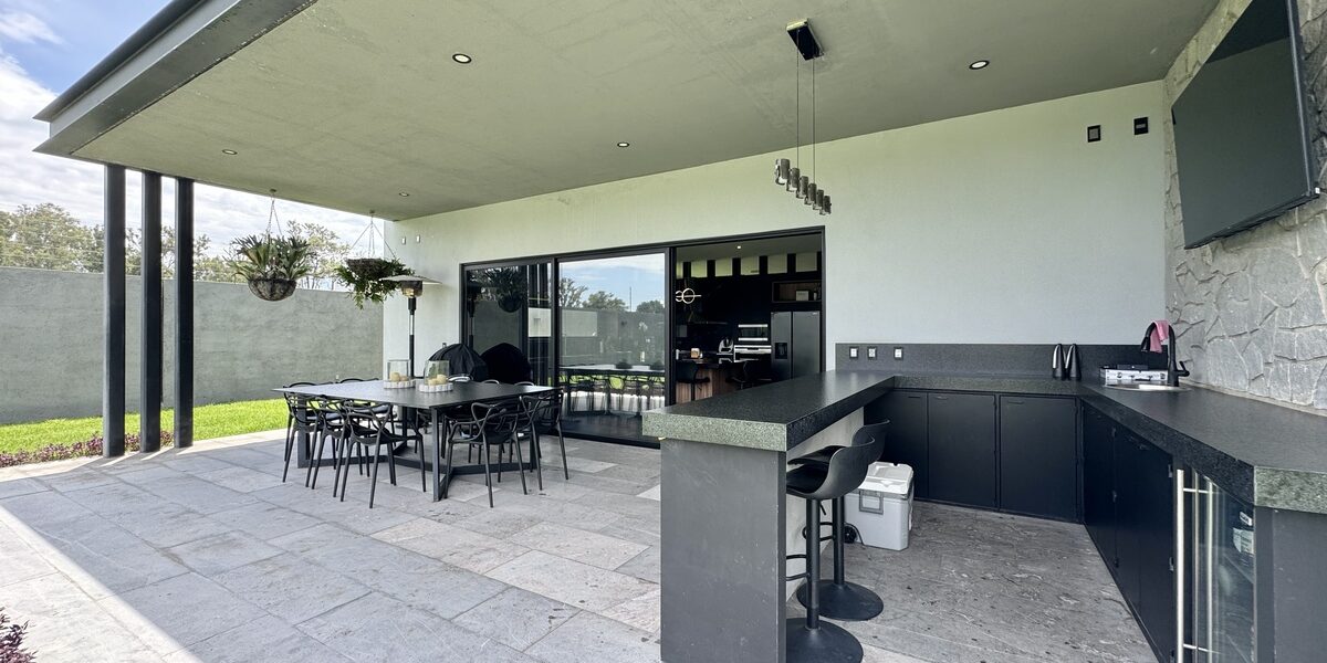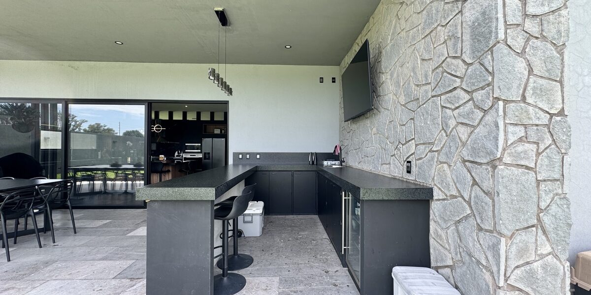 -terraza equipada con barra, tarja y espacio para frigobar.