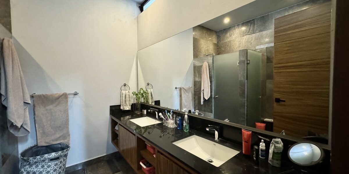-2 recamaras con baño completo, una de ellas con vestidor el otro lo usan como family room pero tiene baño para poder usar esa habitacion como una quinta recamara en caso de ser necesario.
