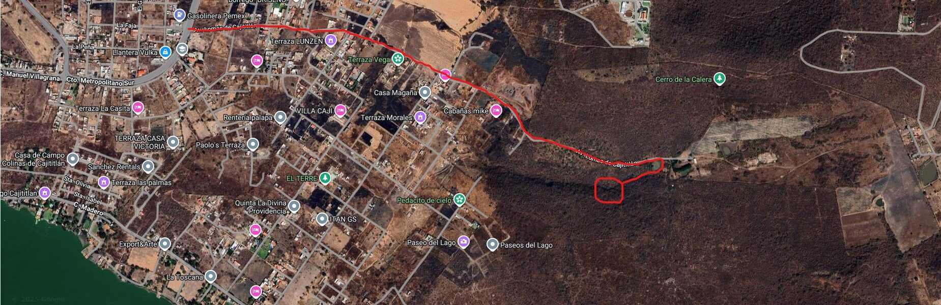 Predio de 170,000 m² con vista panorámica dominante a la Laguna de Cajititlán, actualmente operando como banco de piedra.